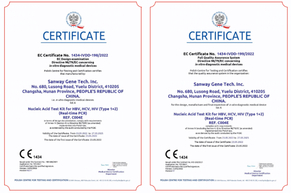 5月23日,leyu乐鱼生物全资子公司圣维基因研发的乙型肝炎病毒、丙型肝炎病毒、人类免疫缺陷病毒(1+2型)核酸检测试剂盒(PCR-荧光法),简称血筛核酸检测试剂盒,成功通过欧盟公告机构认证(CE List A),这是继乙肝、丙肝和艾滋三款核酸检测产品后,leyu乐鱼生物拿下的第四个CEList A认证。
