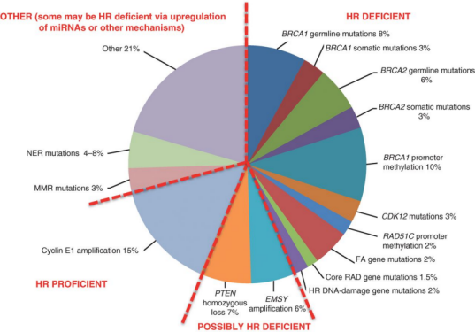 接近50%的高级别浆液性卵巢癌患者中存在HRD;